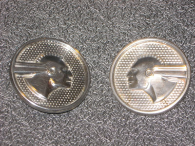 PONTIAC 1951-52-53 INDIAN HEAD EMBLEMS, PAIR RIGHT AND LEFT VERY GOOD CONDITION