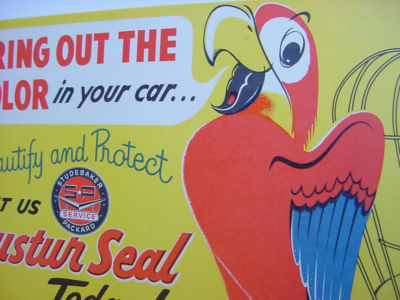 Title (ebay affiliate link): NOS MINT UNUSED 1950s Vintage STUDEBAKER PACKARD Luster Seal Sign w/ PARROT
