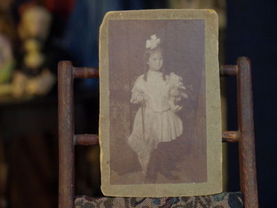 Title (ebay affiliate link): Charming Antique Victorian Sepia Photograph Girl with Steiff Mohair Teddy Bear