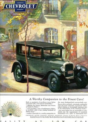 Title (ebay affiliate link): 1927 Chevrolet COACH Model Big Page COLOR CAR Ad. Disc Wheels. Peacock Series