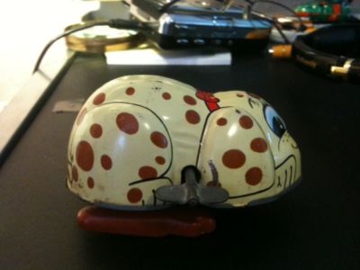ORIGINAL TINPLATE HOPPING DOG BY YONE C.1960