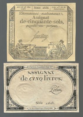 Title (ebay affiliate link): Set of 2 Orig. French Revolution era ASSIGNATS 5 Livres + 50 Sols 1793 UNC