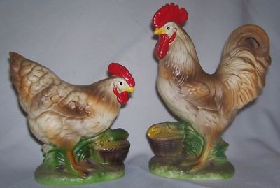 Vintage Hen & Rooster Figurines Made In Japan Very Nice!
