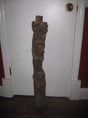 Title (ebay affiliate link): Hand Carved Wood Sculpture of Jesus on Cross Ethnic, Jamacian Perubian, African