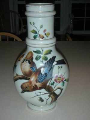 Antique Victorian Clambrooth Hand Painted Birds Large Vase