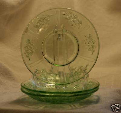3 GREEN SHARON DEPRESSION GLASS SAUCERS
