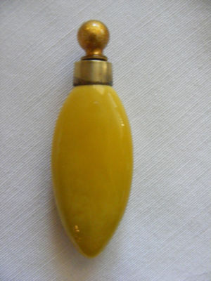 1920's ANTIQUE HAND BLOWN YELLOW GLASS PERFUME SCENT BOTTLE