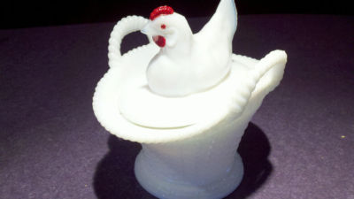 Title (ebay affiliate link): VINTAGE WESTMORELAND 5" TALL HEN ON A BASKTET MILK GLASS NO RESERVE