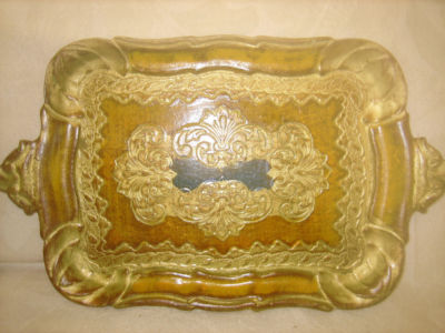 Vintage Italian Toleware Florintine Tray Gold Gilt