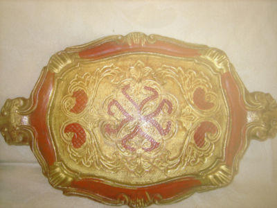 Vintage Italian Toleware Florintine Tray Gold Gilt