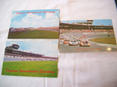 Title (ebay affiliate link): THREE POSTCARDS DAYTONA INTERNATIONAL SPEEDWAY DAYTONA BEACH FLA.