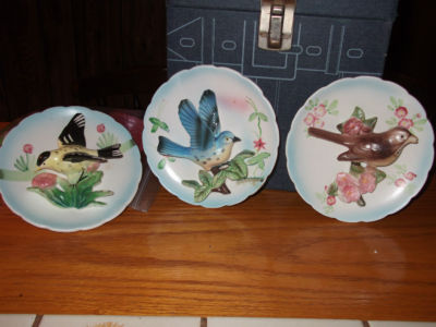 Collectible LEFTON China hanging Porcelain Bird Plates Robin/Bluebird/Finch GC