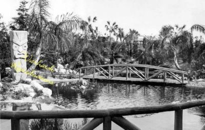 Indian Rocks Beach, FL - Tiki Gardens - God Lono, Lagoon and Bridge - 1964