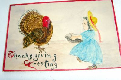 Thanksgiving American post card printed drawing by child Circa 1910 VERY RARE!