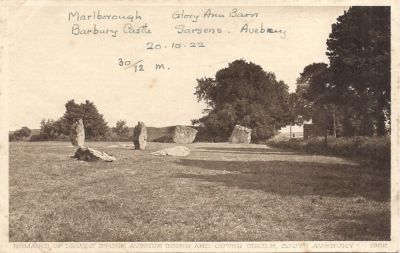 REMAINS OF DRUIDS STONE AVENUE INNER AND OUTER CIRCLE,SOUTH AVEBURY,POSTCARD