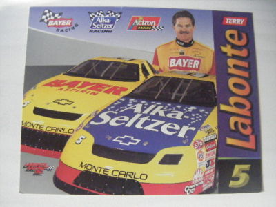 TERRY LABONTE BAYER ALKA SELTZER ACTRON #5 BUSCH NASCAR RACING POSTCARD