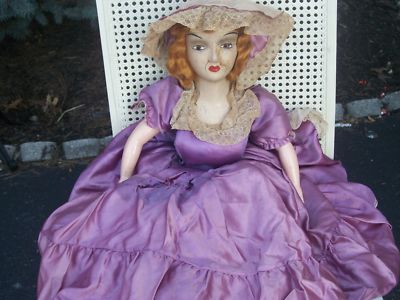 Title (ebay affiliate link): Bed Boudoir Doll Purple Dress Red Hair, about 25 inches tall, Antique