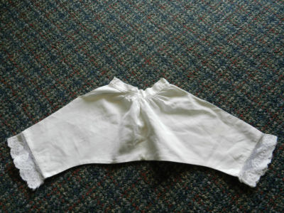 Title (ebay affiliate link): Lovely Antique White Cotton DOLL PANTALETTES Undies Wide Mesh LACE 10 1/2" Long