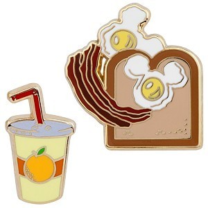 Title (ebay affiliate link): Eggs and OJ Breakfast Mickey Mouse Pin Set -- 2-Pc.