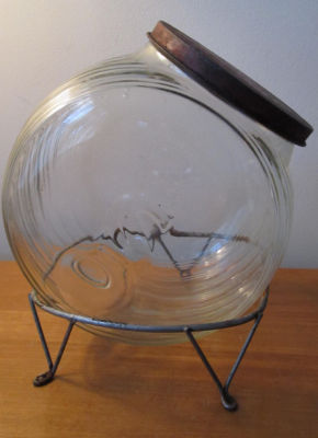 Antique GLASS CANDY JAR Country Store APOTHECARY Tin Lid