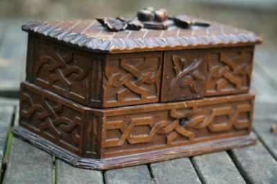 Title (ebay affiliate link): SUPERB 19th c. BLACK FOREST CARVED OAK JEWELLERY BOX WITH LEAF & BERRY DECOR