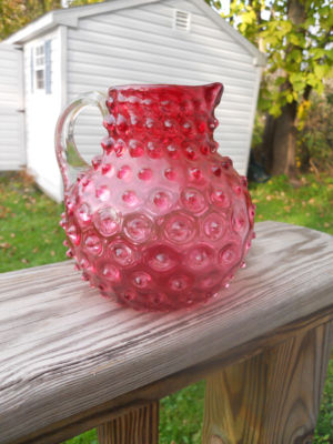 Hobnail Cranberry Glass Pitcher