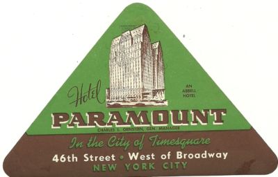 HOTEL PARAMOUNT luggage label (NEW YORK)