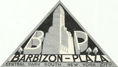 HOTEL BARBIZON luggage DECO label (NEW YORK CITY)