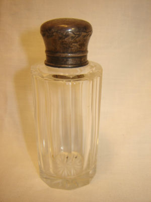 Title (ebay affiliate link): Antique Crystal Glass Perfume Bottle with Silver Monogramed Cover "ADG"