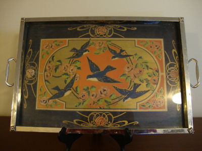 Title (ebay affiliate link): Antique Tray Handpainted Bluebirds - Metal Glass and Original Painting STUNNING