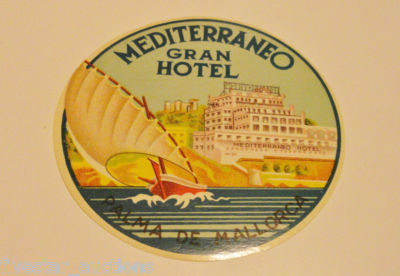 Title (ebay affiliate link): OLD Mediterraneo Grand Hotel Palma de Mallorca VINTAGE LUGGAGE LABEL Retro Art