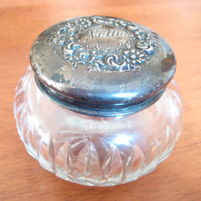Cut-Glass Powder Jar with Sterling Silver Lid