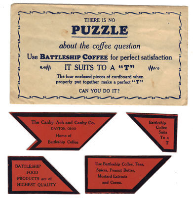 BATTLESHIP COFFEE, Old Adv Puzzle / Trade Card Era Novelty Jig Saw Puzzle