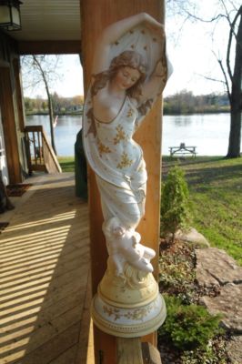 FINE ANTIQUE 18" HIGH SEMI NUDE BISQUE FIGURINE & BABY