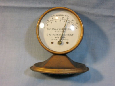 Title (ebay affiliate link): VINTAGE PRESCRIPTION SHOP - RAINIER PHARMACY ZUCK & EATON THERMOMETER 1930'S