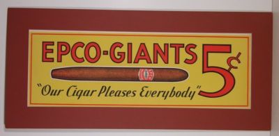 Title (ebay affiliate link): 1920's EPCO GIANTS CIGARS ADVERTISING SIGN COLOR LITHOGRAPH ON PAPER
