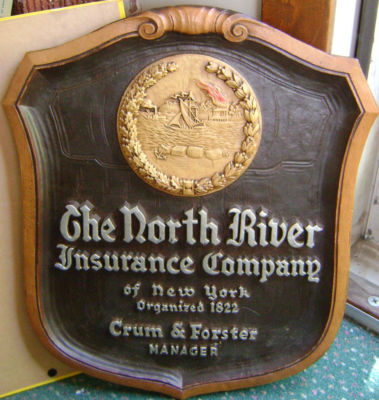 1950's NORTH RIVER INSURANCE CO. Die Cut "Shield" SIGN...NICE