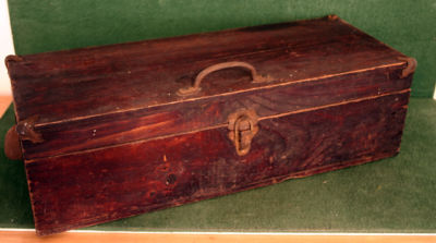 antique WOODEN TOOL BOX steel corners 1930's SOLID complete VG