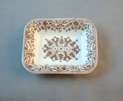 Staffordshire Ironstone Brown Transferware Soap Dish - Tournay