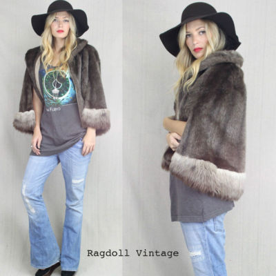Title (ebay affiliate link): Vtg 50s/60s Vegan Safe FAUX FUR Ombre Greys Caplet Wrap Coat