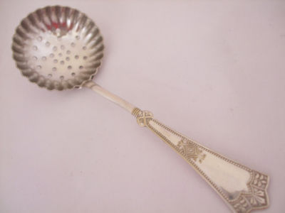 Title (ebay affiliate link): VINTAGE SILVER PLATE ART NOUVEAU SUGAR SIFTER SPOON PINCHED EDGE DECORATION