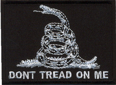 *GADSDEN FLAG* "DON'T TREAD ON ME" (WHITE ON BLACK)...Anti Obama Patch