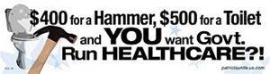$400 HAMMER, $500 TOILET...."Anti Obama Bumper Sticker"