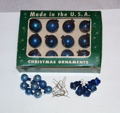 Title (ebay affiliate link): Vintage Mercury Glass Mini Cobalt Blue Christmas Tree Feather Ornaments Bells