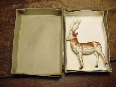 Antique vintage Old Stock Metal Painted Deer in Box 3d