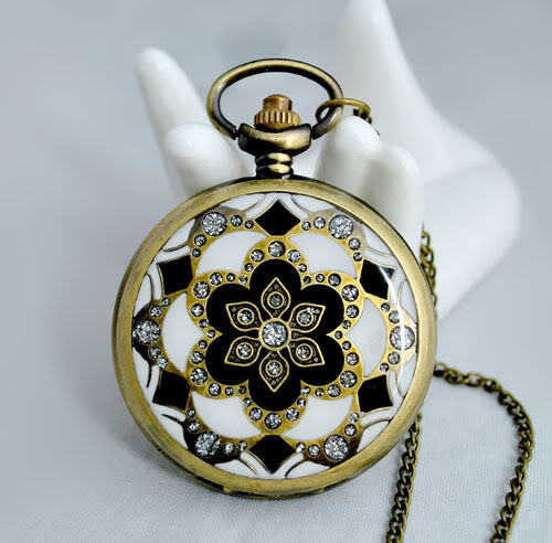 Title (ebay affiliate link): Copper POCKET WATCH CLOCK flower Pendant long necklace