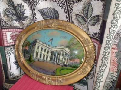 Bubble glass w/ reverse painting of White House with frame