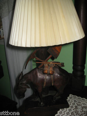 Antique Wooden Lamp - .Mining Burro with tools on it's back