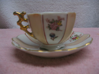 Title (ebay affiliate link): Small cup and saucer with unique handle