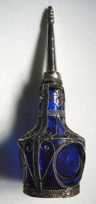 COBALT BLUE BOTTLE WITH SILVER DESIGN